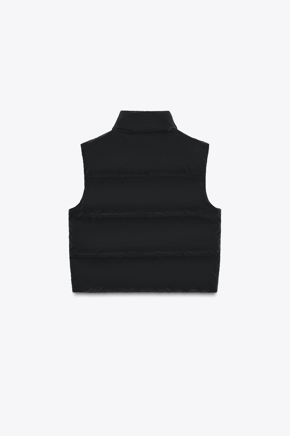 Colete acolchoado de gola subida e sem mangas. Bolsos laterais com fecho de correr. Bainha ajustável com cordões elásticos e stoppers. Fecho frontal com fecho de correr.